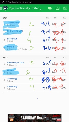 Week 15 SHOCKER!!! DSVP loses to the “former” champ TBIAC 122-87. Shocking part was how close this one was. DSVP goes to the Sacko Bowl and Glass escapes the horrible shame and name-calling of playing in the loser championship game.