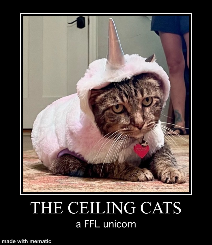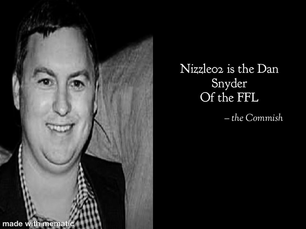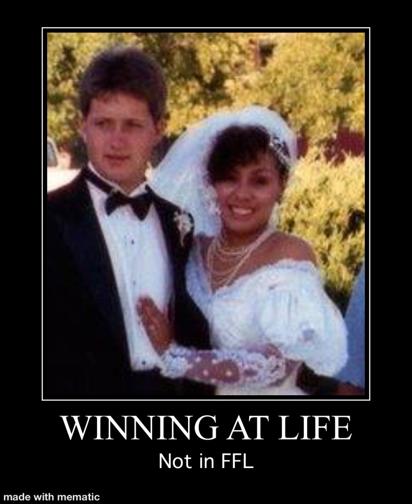 Yes, it happened. We aren’t even going to act like no one noticed “the shot heard around the world”! In a “Rudy” like underdog story, a real rags to riches fable, a Cinderella story if you will. The FFL story we’ve all been buzzing about….. Cats win again. Or was it LO lost again? Nobody was surprised Vina Mites lost or Nizzle02 won. Ooooohhh yeah, I see it now….DFUN WINS DFUN WINS DFUN WINS!!! The epic losing streak is over at 274 straight losses. Fireworks ensued, tears were shed and somewhere far far away, a little angel got it’s wings.