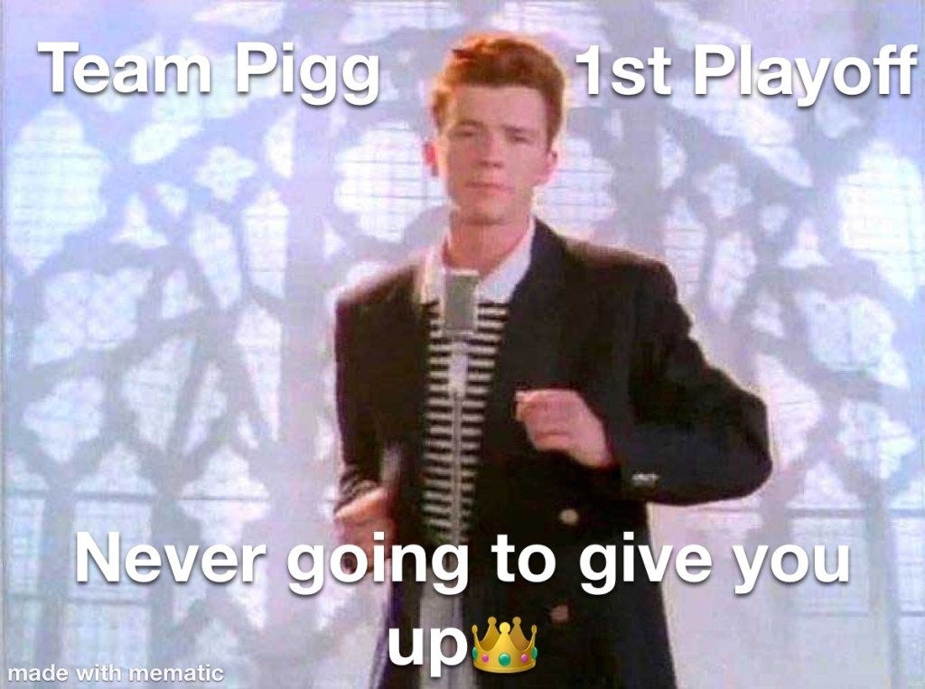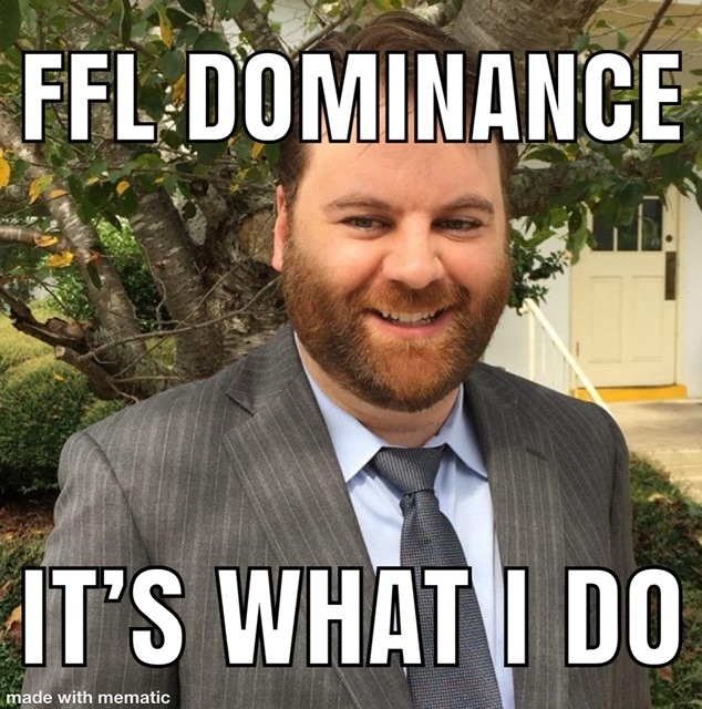 In the Sunday Night game, the little FFL team that could, did…again. 3 in a row. As we learned last week, that’s called a winning streak! Team Pigg hosted the diminutive brawlers to his home field, frozen and devoid of fans. And lost. 147-129. Pigg played a great game, but the FFL gods are fickle. 21 from Allen, 16 by Najee and Coop caught 16. Godwin (RIP)13 before the end of his season happened. 17 kicked by Seibert and a monster 26 from the Denver D. But, as we all know by now, it wasn’t enough to stop the miniature footballer. 22, 26, 19, 18, 14, 17, 15, 9, and 4. Solid game by both, but there is only one winner and it wasn’t Pigg.