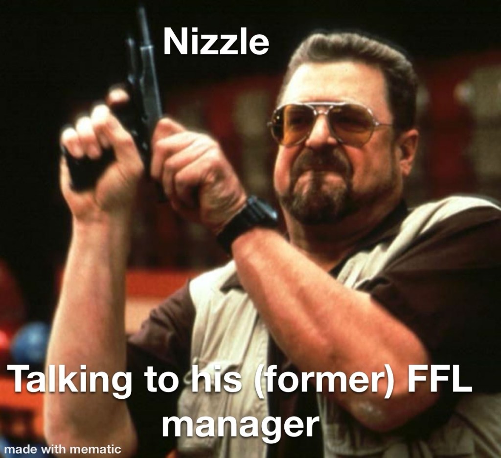 In the battle for Oaklawn, two heated enemies faced off at Enron Memorial Stadium, just down the street from Jerry’s compound, and Hunkys. Not sure why that was the geographical reference point Nizz used as directions, or why he knows it so well… But back to football of the imaginary type. TBIAC fought through terrible QB play with 32 from Gibbs, 26 by Saquon, and Bowers (maybe the TE1) 19. Nizz, with his 4th head coach of the season started off hot with Kyren rumbling for 19 and Pitts shocking us all with 13. Tucker, the Great One, kicked in 13 and Phi D went off with 22. The rest of the team didnt respond to the new coaching staffs pregame pep rally. Harrison Jr 5, Tank 0, Mostert (most experts #1 waiver wire pickup this week) 3. 124-102, Nizz goes down like his Head Coach’s chance of a new contract. The Capt rolls on. Oaklawn is his playground now!